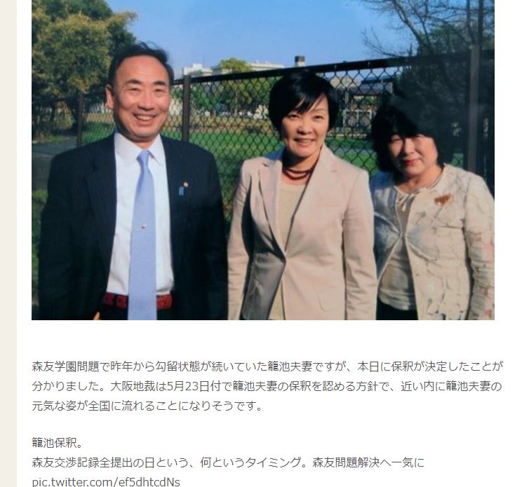 森友学園の補助金詐欺事件で起訴・勾留されていた籠池被告夫婦の保釈決定 大阪地裁